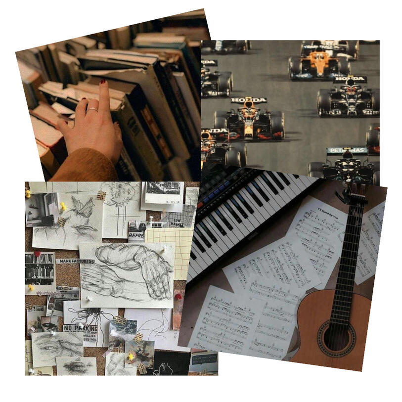 PHOTOGRAPHY; GRAPHIC DESIGN; ART; MUSIC; TRUE CRIMES; F1; F2; VIDEO GAMES; WRITING (wattpad author on a break)